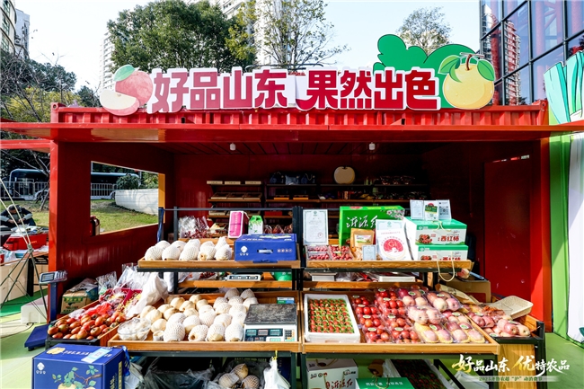 在商场西南门户外广场,“好品山东 果然出色”与“优特农品 满鲜欢喜”两大主题创意快闪店为消费者带来更多“新鲜”惊喜。快闪店以“山东果园”“山东菜篮子”为设计灵感,融入趣味亲子互动场景,还有摸得着、闻得到的新鲜体验——烟台苹果、潍坊萝卜、莘县蔬菜、七彩小番茄、山农酥梨、草莓西红柿等数十款特色时令农产品集中亮相,消费者在打卡互动中即可轻松开启一段“好品山东”寻味之旅。